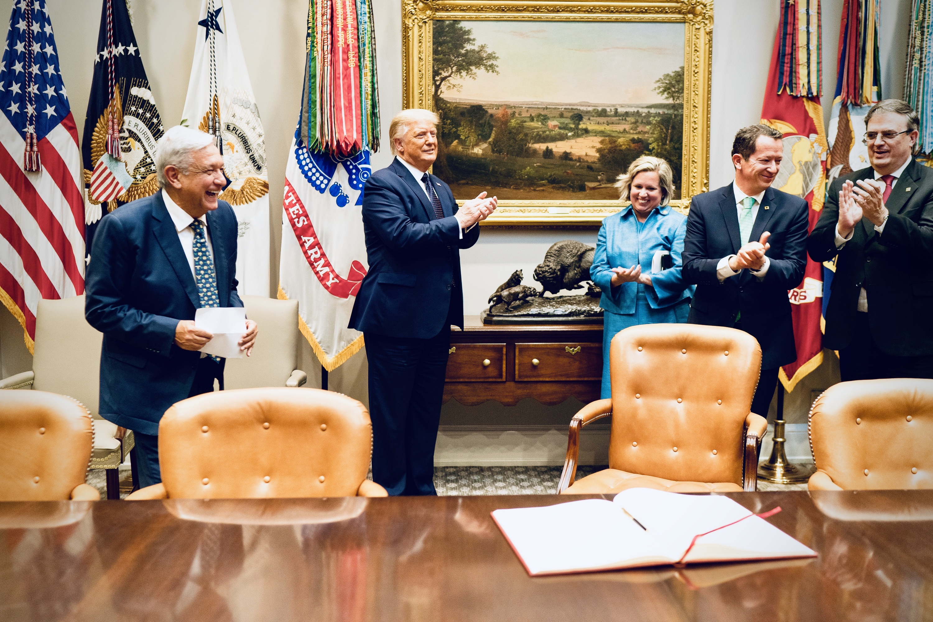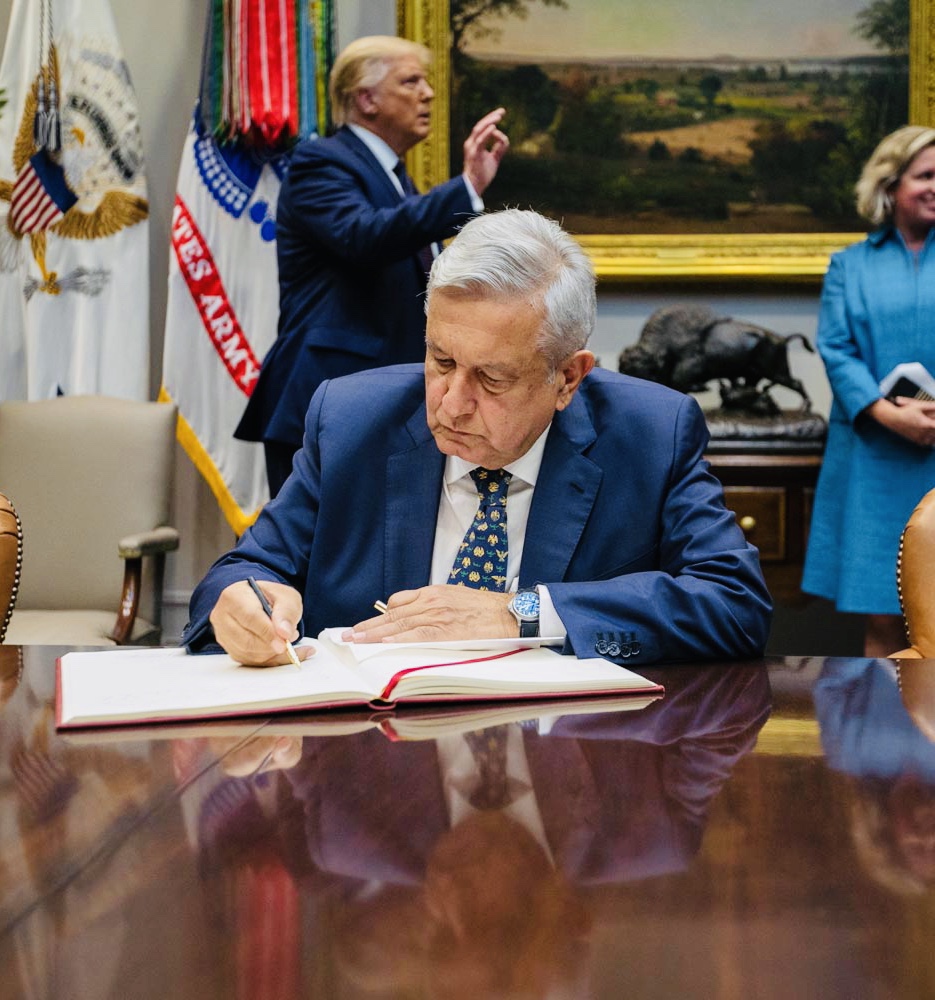 Durante la reunión en la Casa Blanca con motivo de la entrada en vigor del Tratado de libre comercio entre México, Estados Unidos y Canadá (T-MEC), los presidentes Andrés Manuel López Obrador y Donald Trump firmaron una declaración conjunta que afianza la relación histórica entre ambos países.