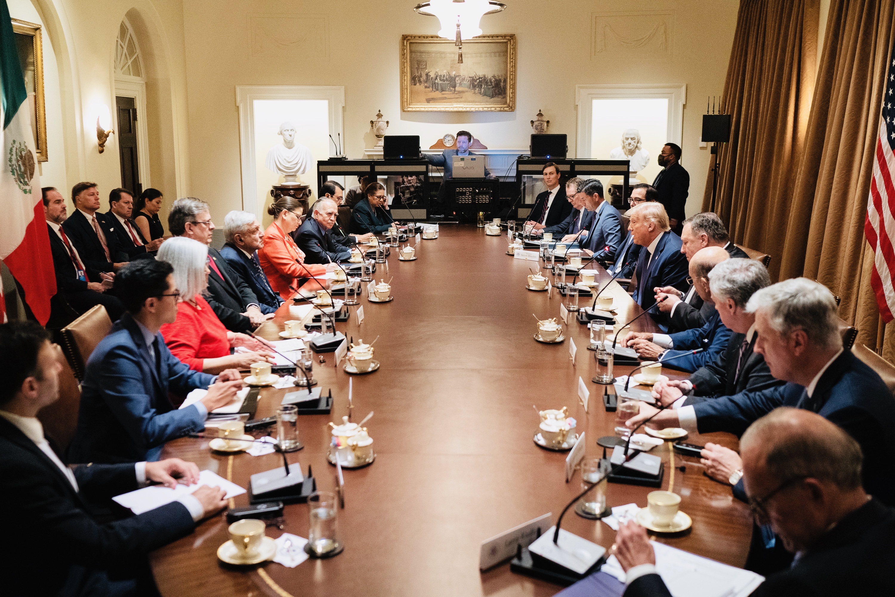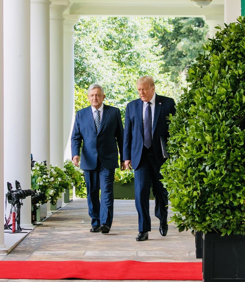 A las 2:30 de la tarde, AMLO llegó a la Casa Blanca donde fue recibido por el presidente Donald Trump para sostener una reunión donde destacó los vínculos económicos, comerciales, sociales, culturales, históricos y de amistad que unen al país con Estados Unidos, al tiempo que resaltó la comprensión y respeto de su homólogo a la soberanía de México.
