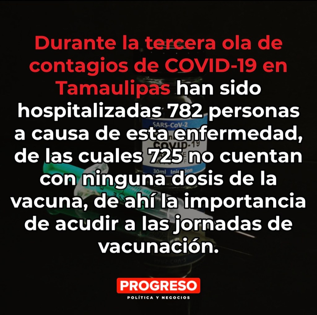 Y es que la tercera ola, así como el avance de la variante Delta, han afectado principalmente a los jóvenes y a las personas no vacunadas, de acuerdo a las estadísticas, el mayor número de hospitalizaciones son de pacientes que no han recibo ninguna dosis.