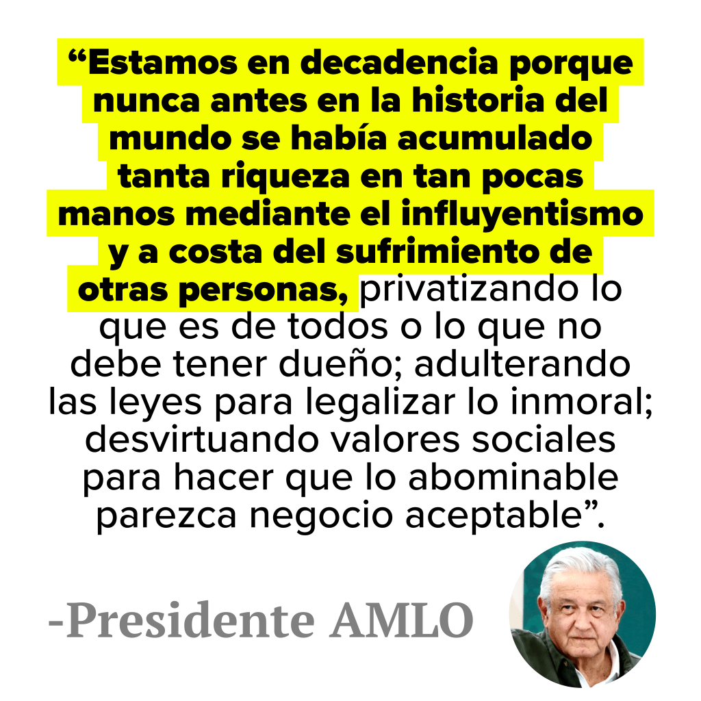 El jefe del Ejecutivo sostuvo que actualmente el mundo se encuentra en un escenario de decadencia debido a que la riqueza se concentra en pocas manos y se privilegia la privatización de lo público.