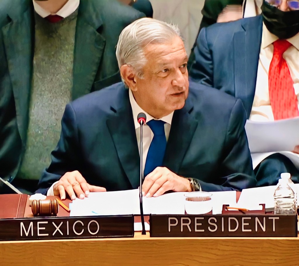El presidente Andrés Manuel López Obrador destacó ante integrantes del Consejo de Seguridad de la ONU las acciones que el Gobierno de México lleva a cabo para atender de manera estructural la pobreza y la migración. Aseguró que solo así y no con medidas coercitivas se alcanzará la paz y el bienestar mundial.