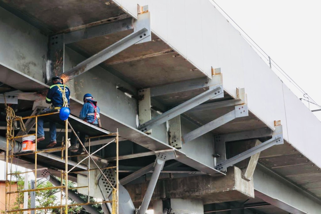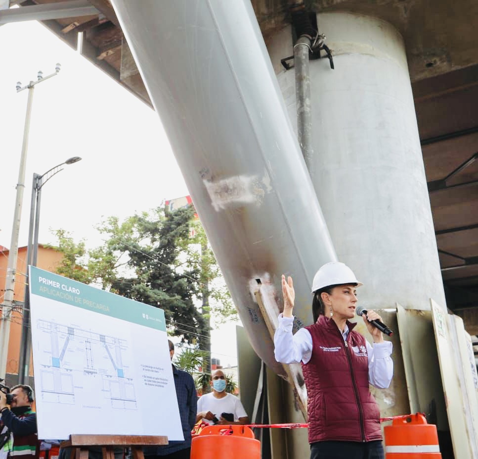 “El primer tramo que queda terminado; ahora Jesús les puede explicar con todo detalle, pero tiene puntales, viga, amarres a la losa superior, tiene un encamisado cada una de las columnas que va a tener a lo largo de todo el Tramo; se desarrolló con una plataforma porque se levanta toda la estructura para que pueda después ser recargada en la nueva estructura de reforzamiento que se está colocando”, añadió.