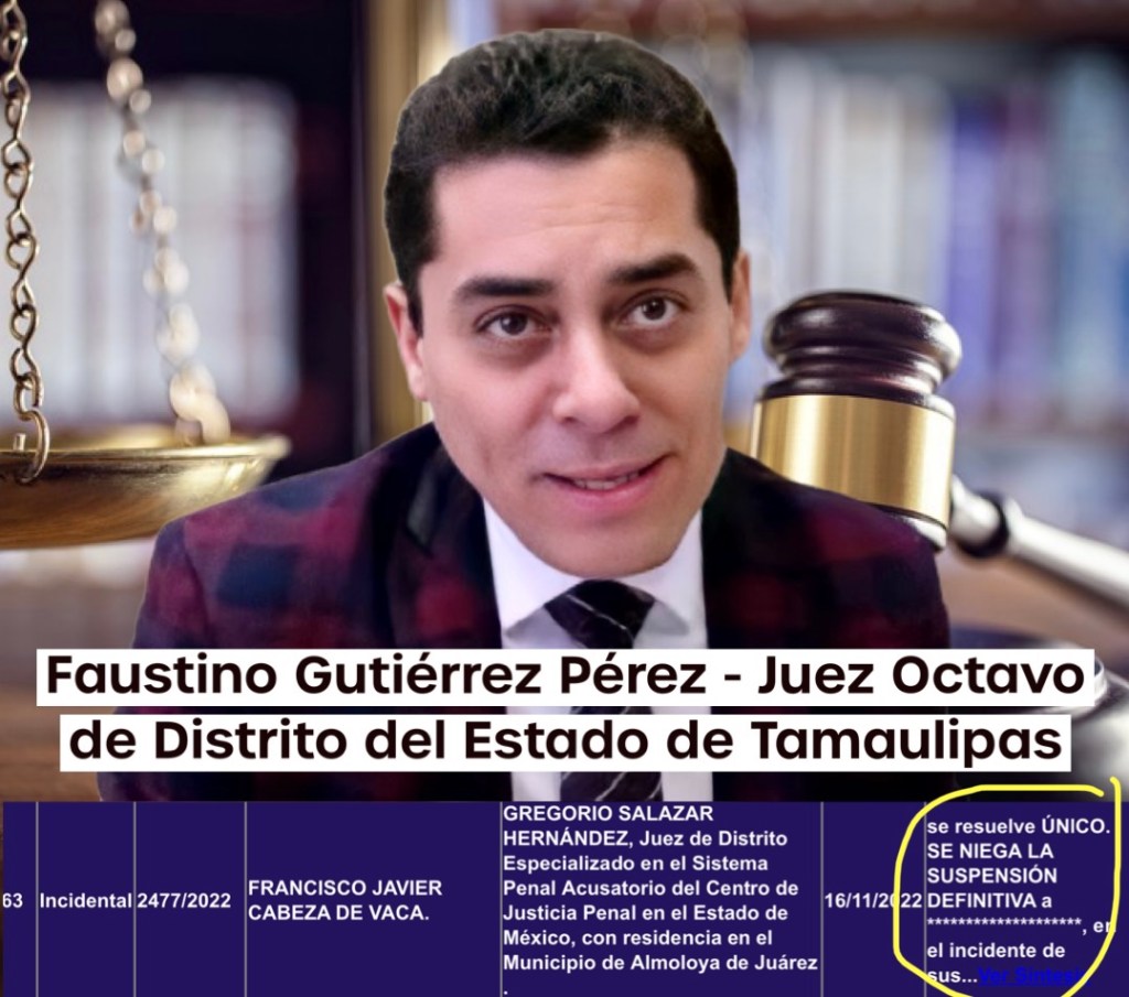 El ex gobernador de Tamaulipas, Francisco Cabeza de Vaca, esta oficialmente prófugo de la justicia mexicana, luego de que el Poder Judicial por medio del Juez Octavo de Distrito del Estado de Tamaulipas, Faustino Gutiérrez Pérez, negó la suspensión definitiva a Cabeza de Vaca dentro del juicio de amparo 2477/2022.