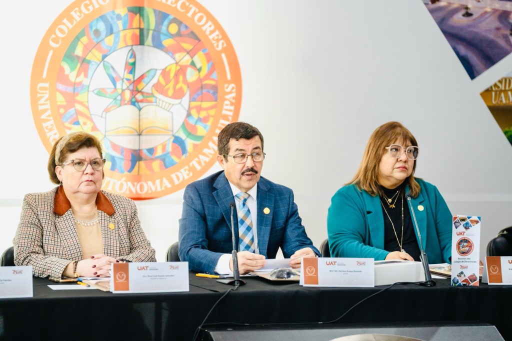 El rector Dámaso Anaya Alvarado presidió, en el Campus Victoria, la décima reunión del Colegio de Directores de la Universidad Autónoma de Tamaulipas (UAT), en cuyo marco expuso una serie de proyectos para el desarrollo de esta casa de estudios.