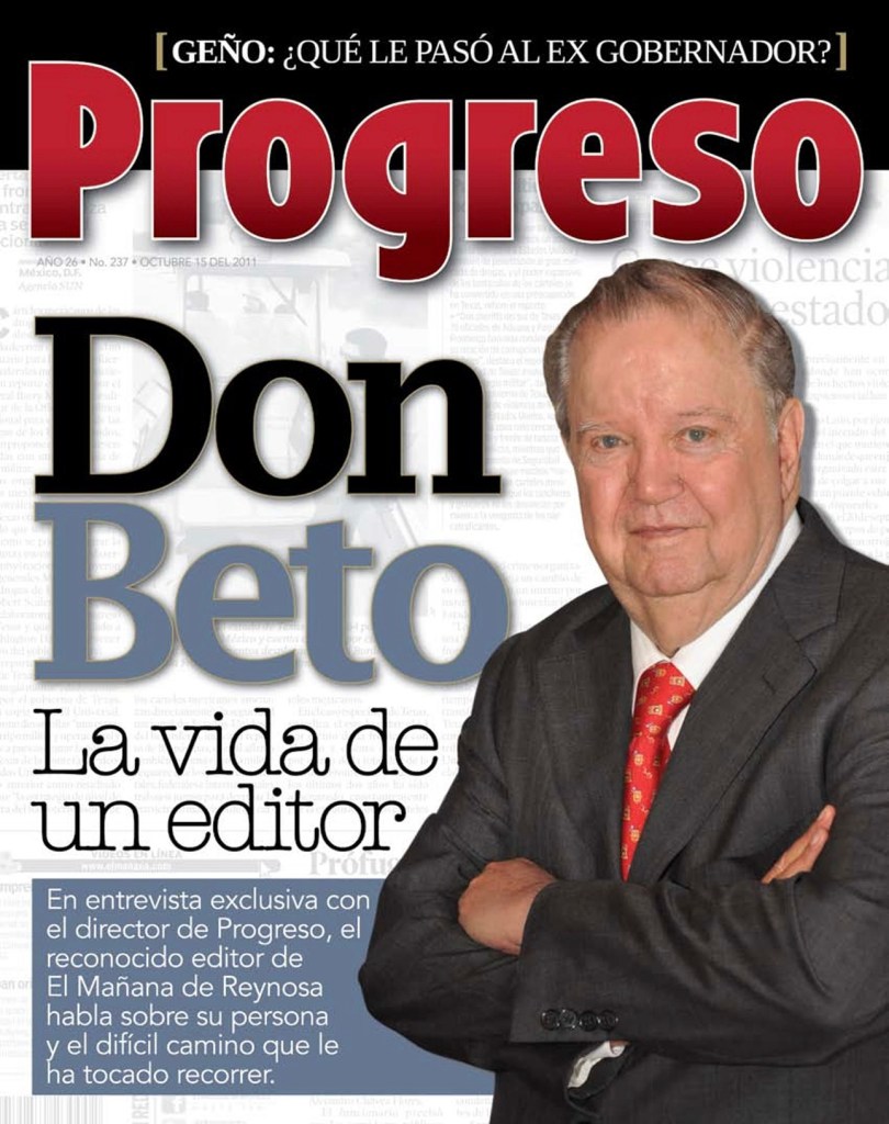 Días antes del encuentro lo visité en su casa de Reynosa, lo saludé y me senté en el sofá de su sala, junto a él tenía más de 5 periódicos, estuvimos conversando sobre temas de política y periodismo, justo cuando estaba por terminar de leer el cuarto periódico le dije: “Don Beto me gustaría hacerle una entrevista al estilo Progreso”, sin titubeos me contestó: “Tú dime el día y la hacemos”, le dije un día y él propuso que fuera en las instalaciones de El Mañana.
